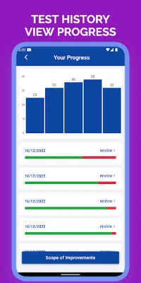 - Keep your progress for each practice test and view history.